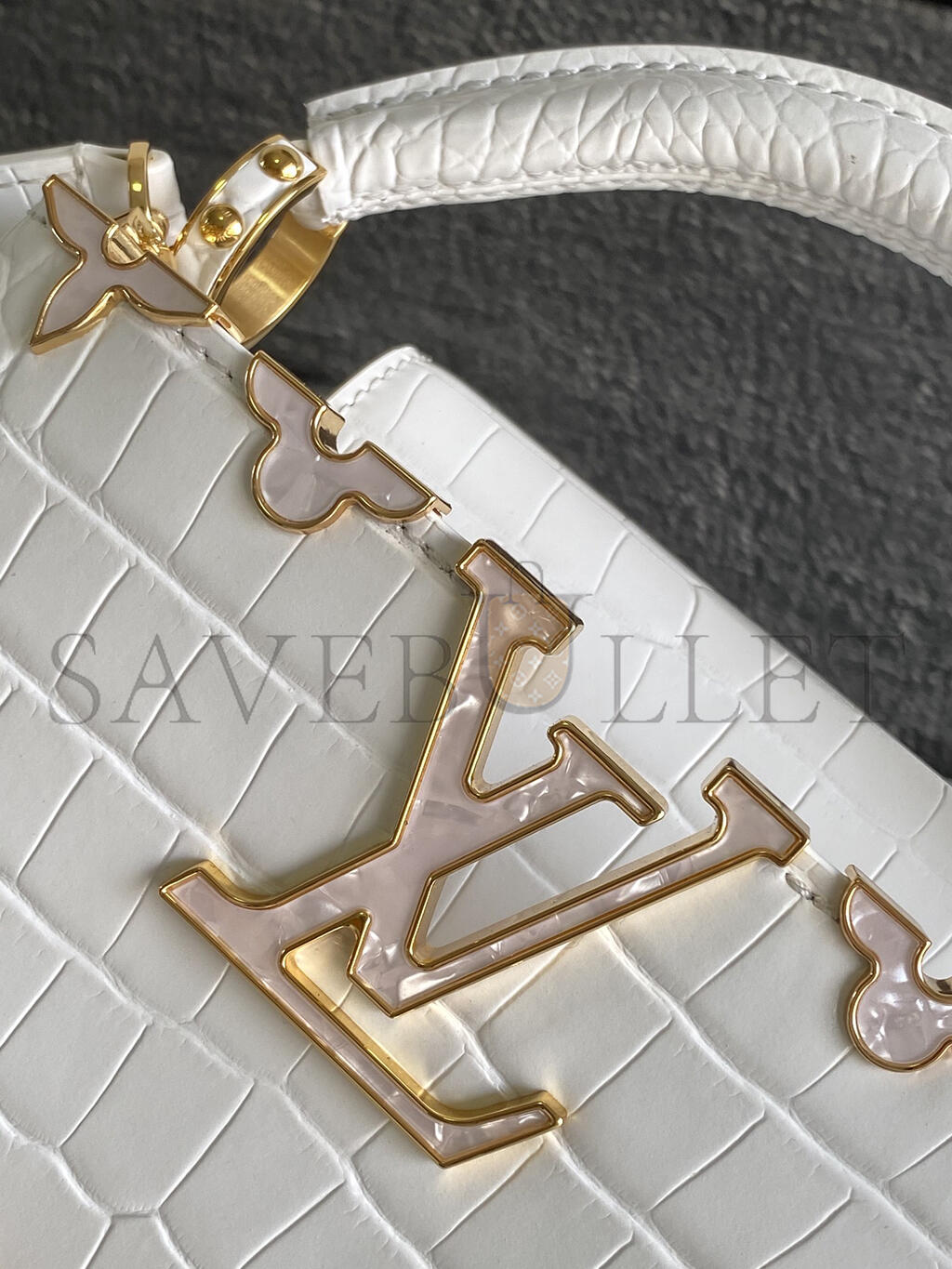 Light-gold color hardware with Mother of pearl on LV and Flower Crown