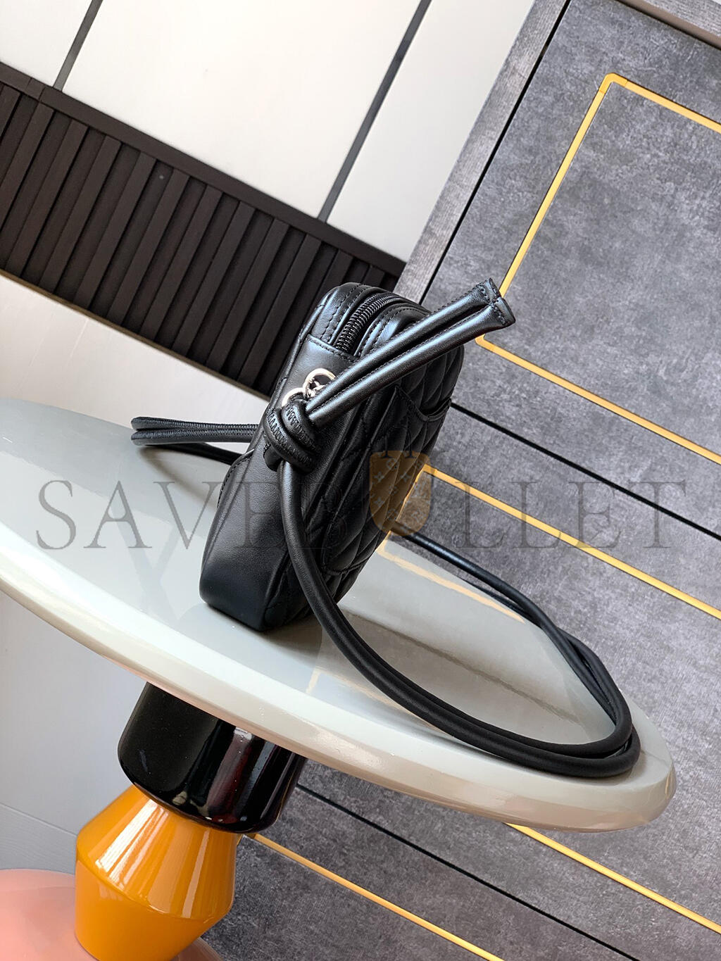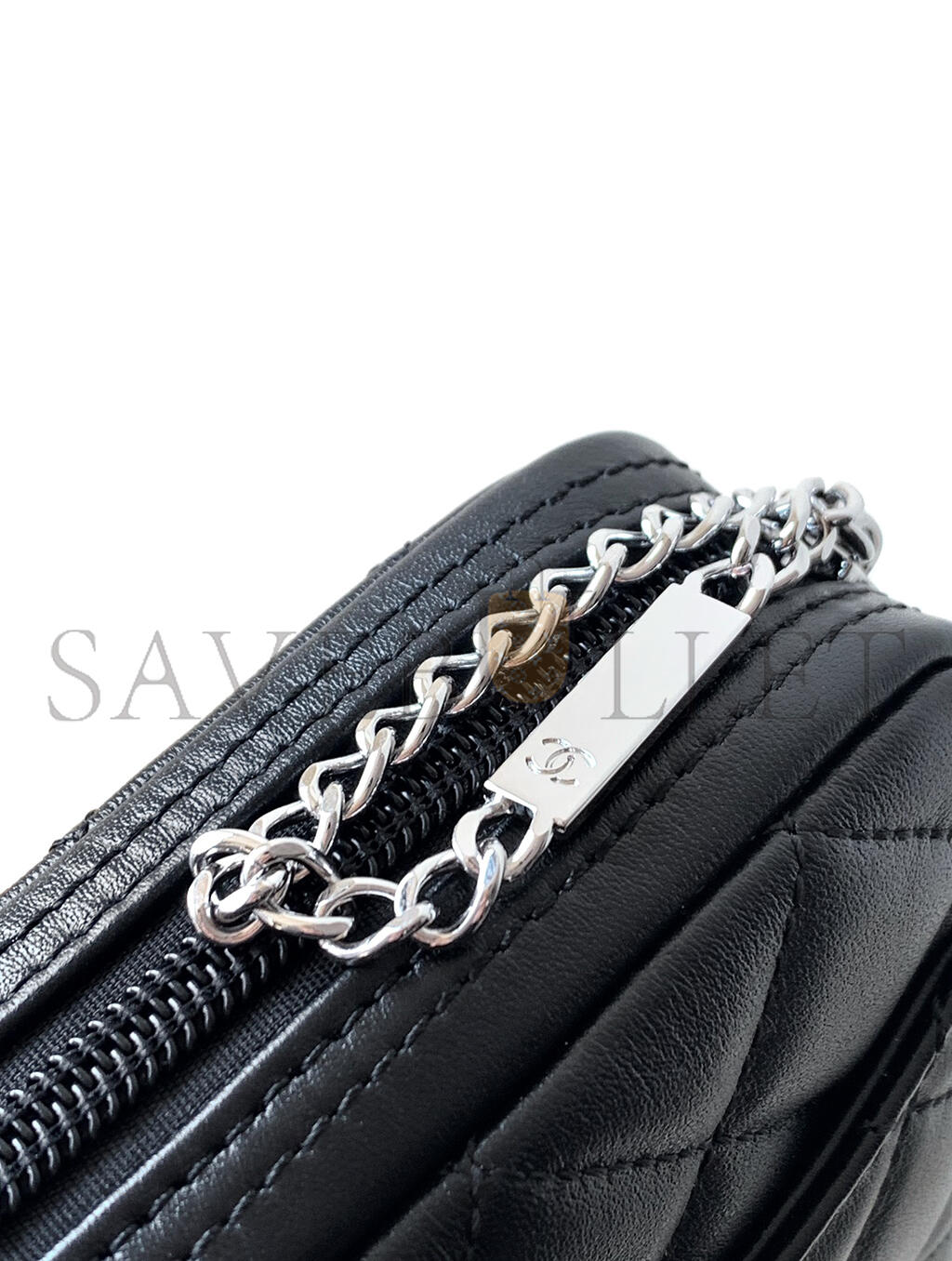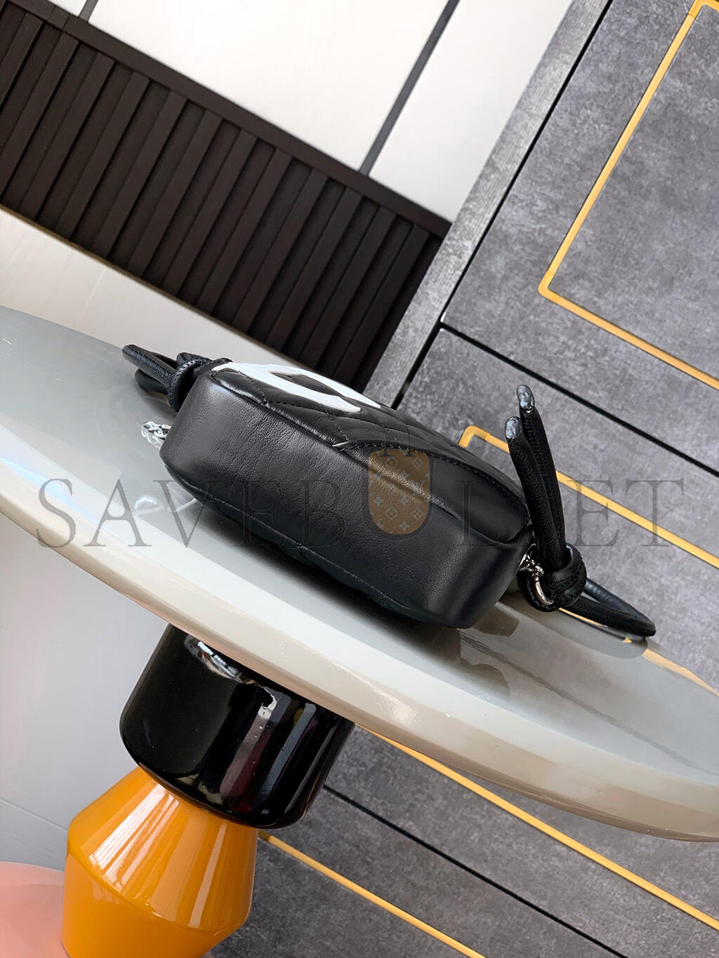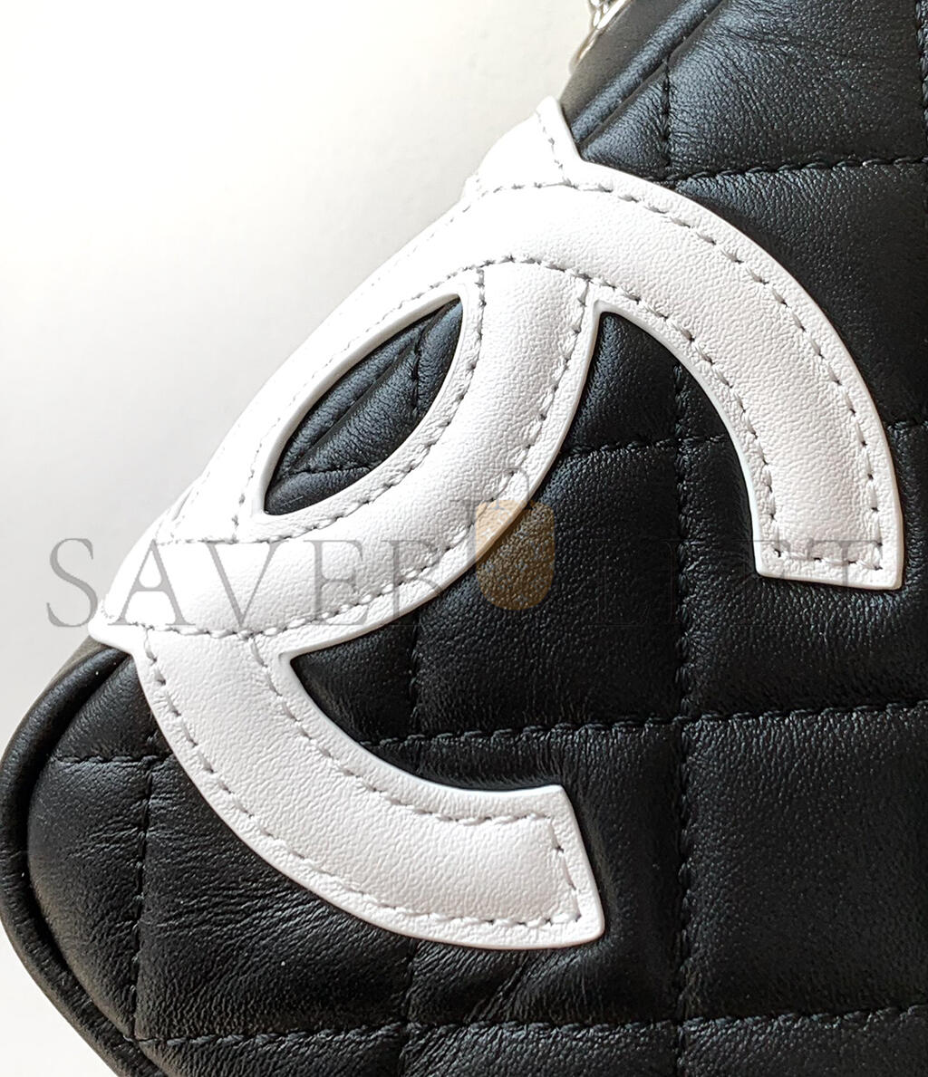 CHANEL MASTER CALFSKIN QUILTED SMALL CAMBON MESSENGER BLACK WHITE 1258604 (15*13*3.5cm)