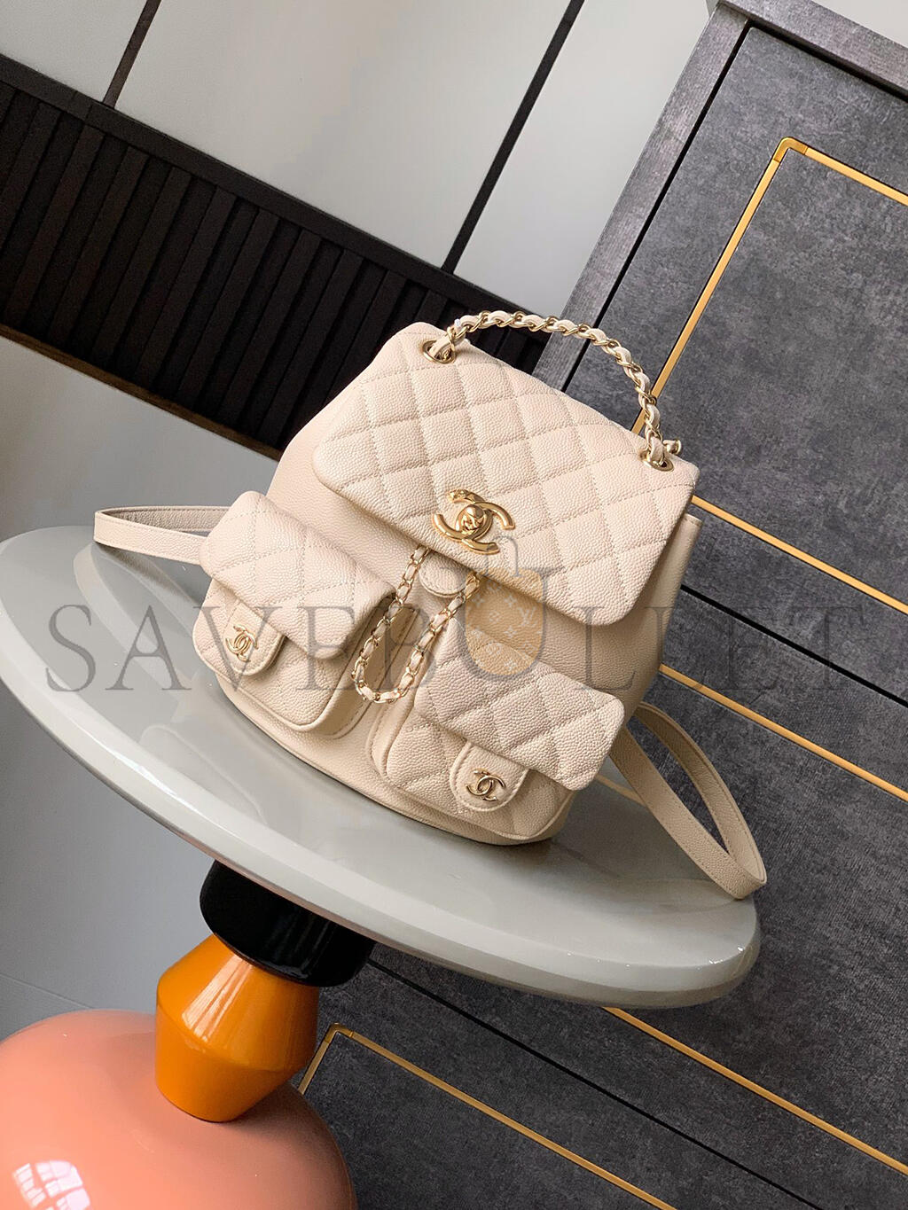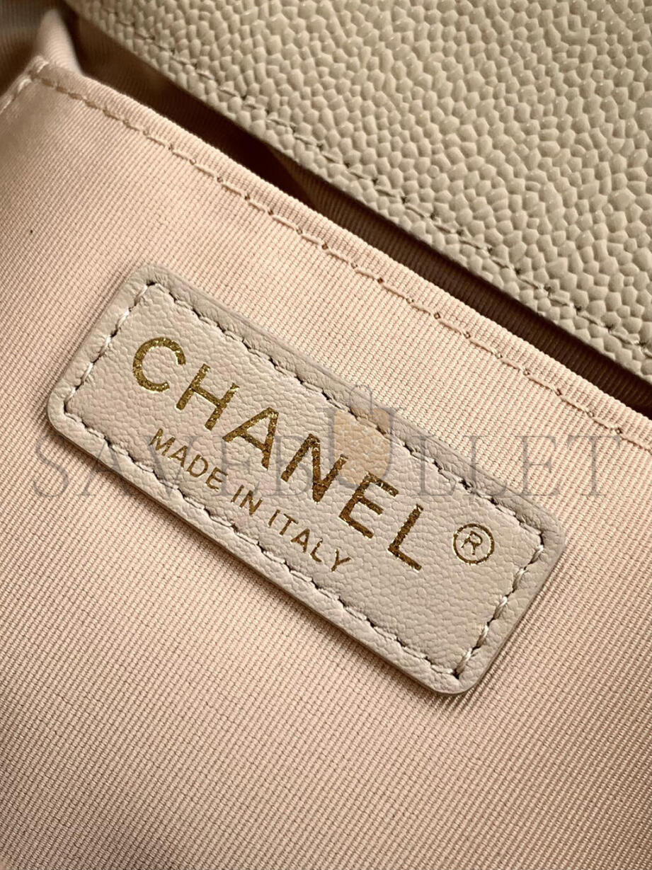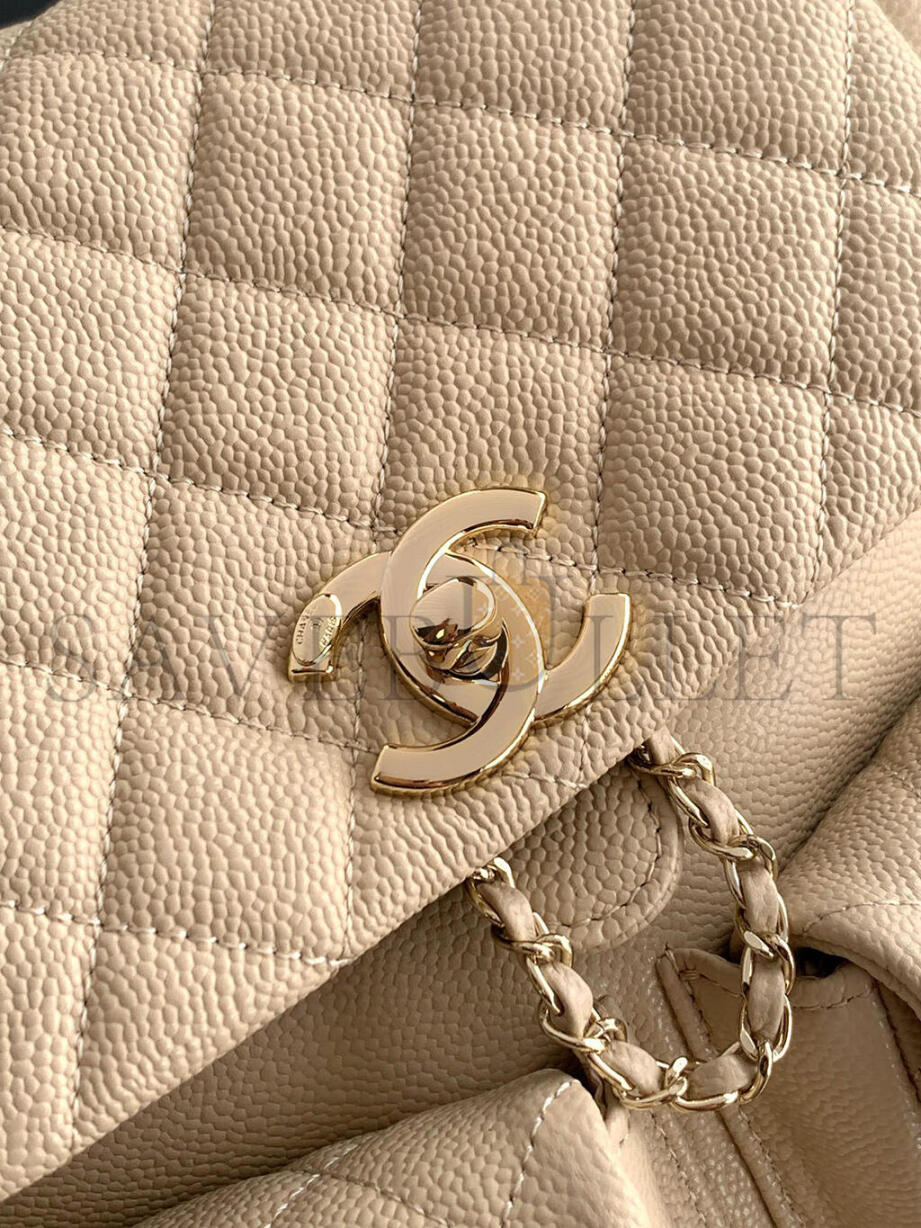 CHANEL LARGR SHINY CAVIAR QUILTED DUMA POCKETS DRAWSTRING BACKPACK MILK TEA COLOR 129235 (21*20*12cm)