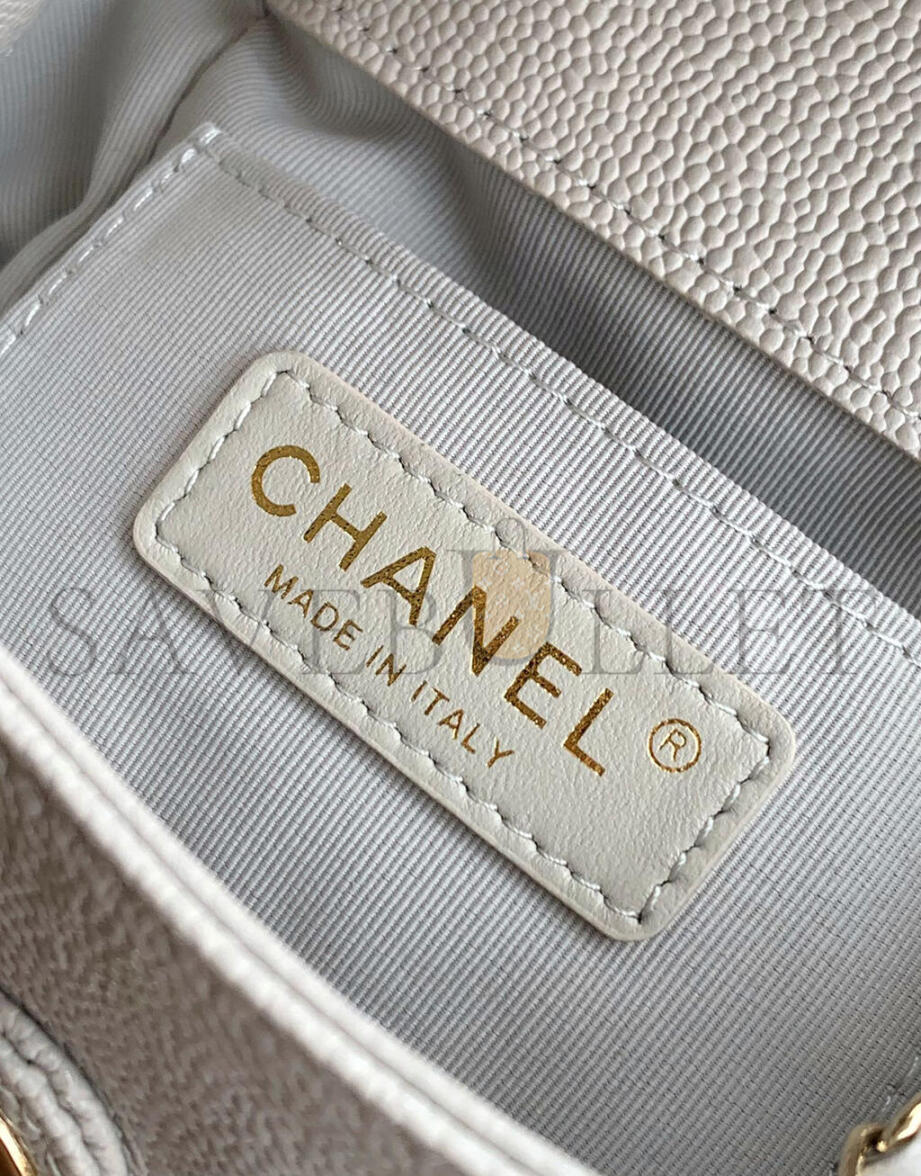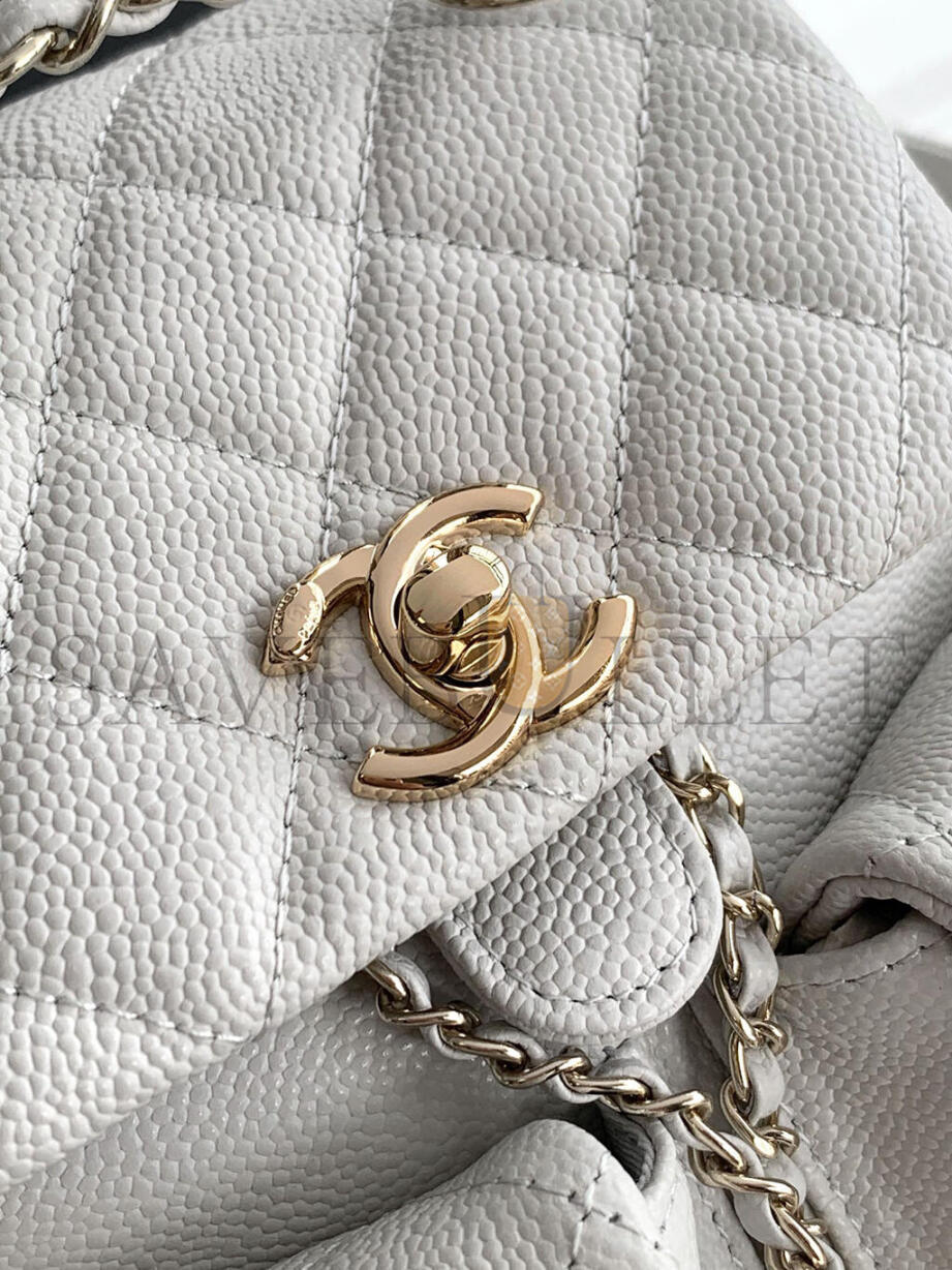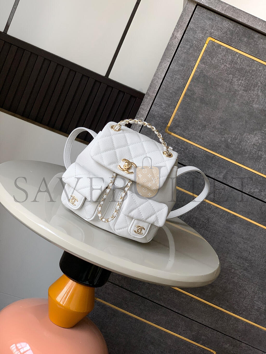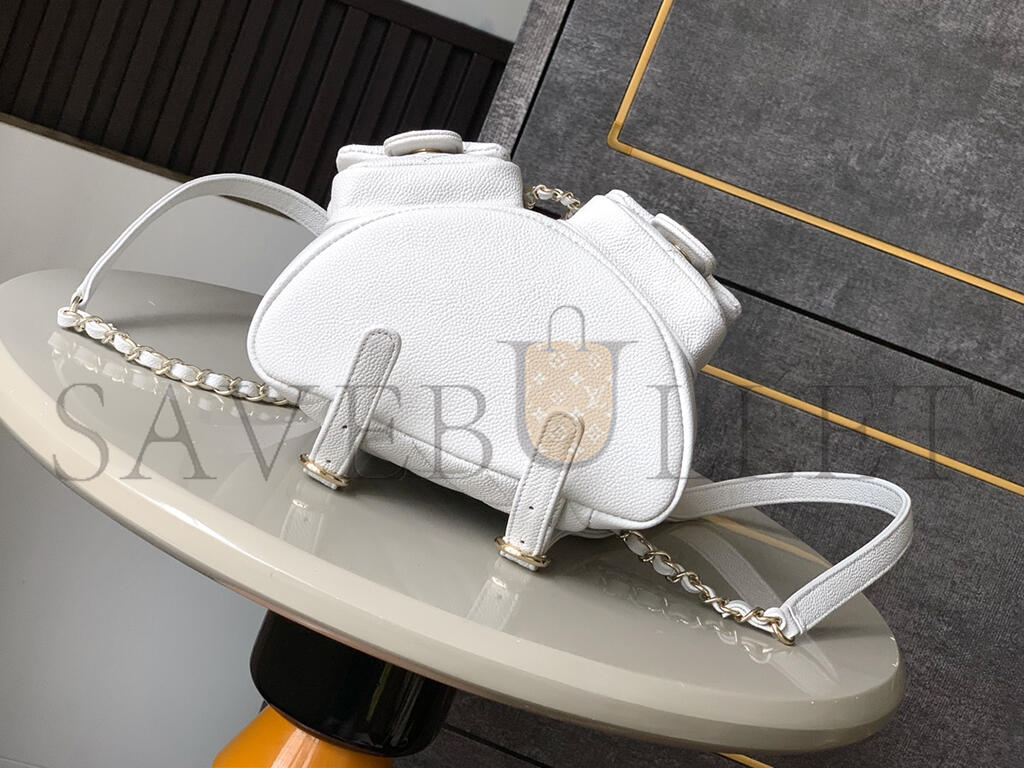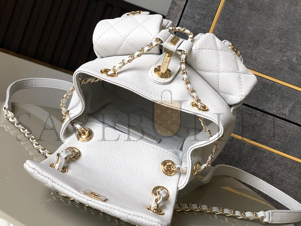 CHANEL SMALL SHINY CAVIAR QUILTED DUMA POCKETS DRAWSTRING BACKPACK WHITE 129220 (17.5*16.5*10cm)