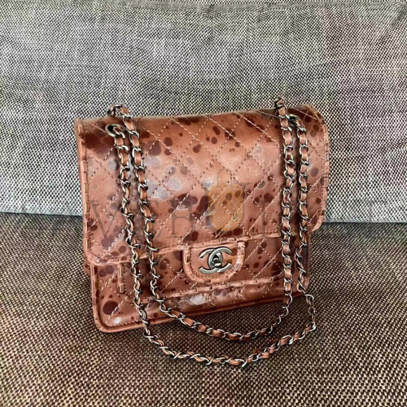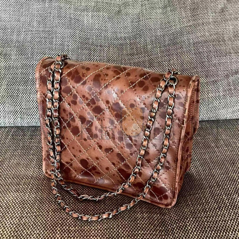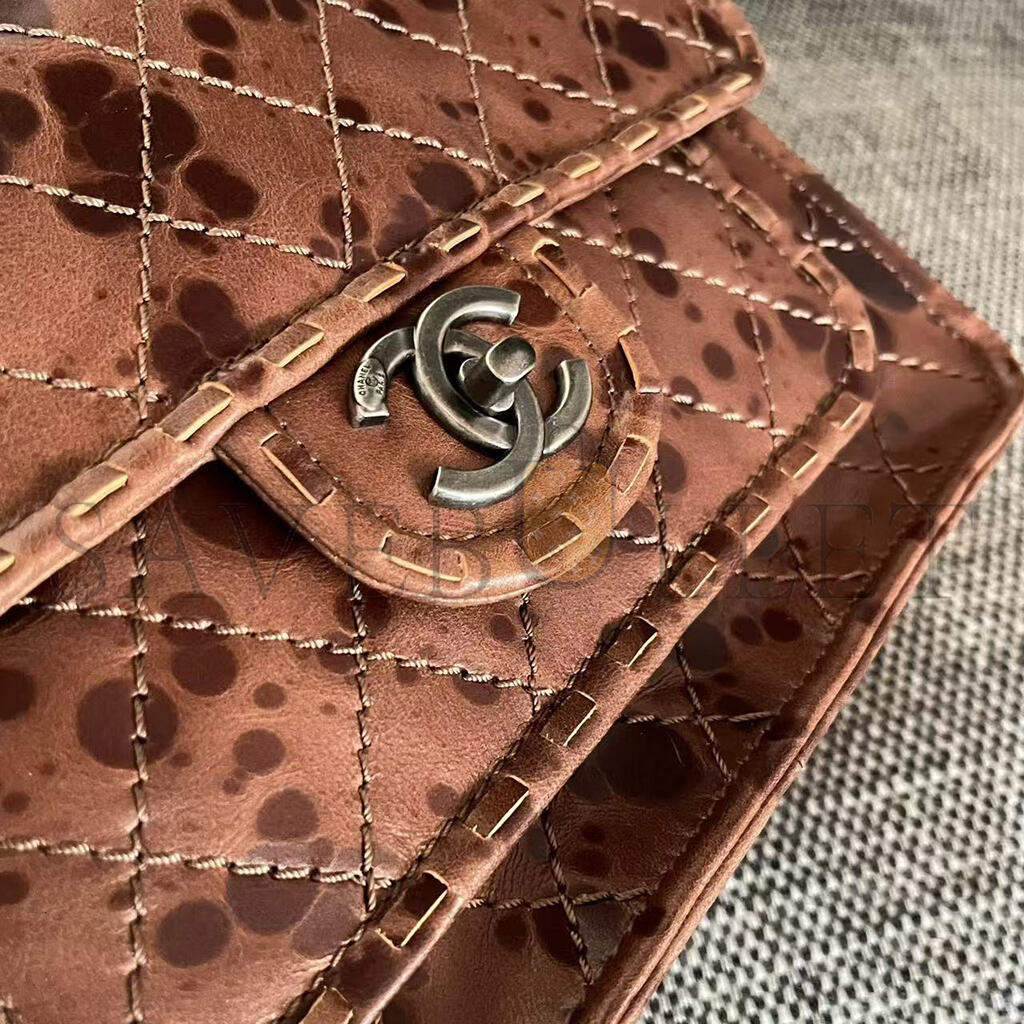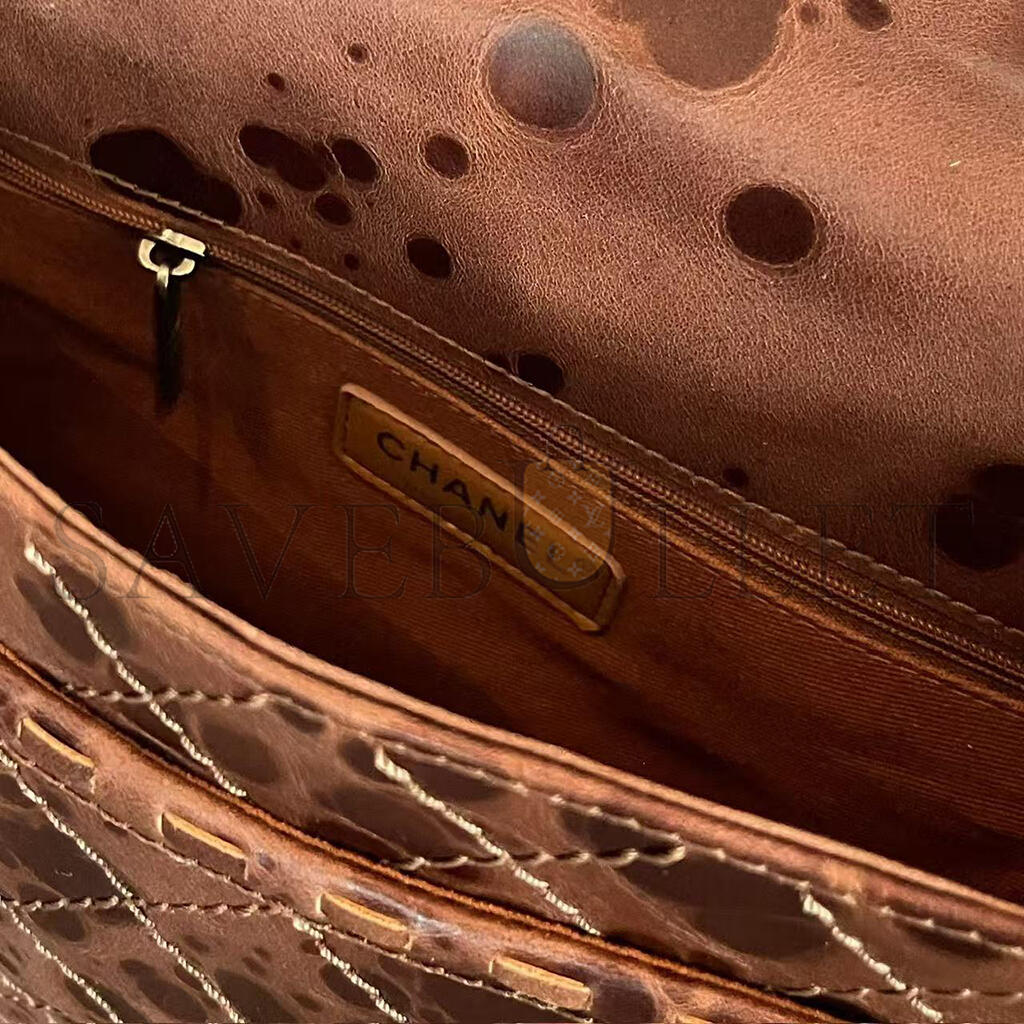 CHANEL OIL WAX LEATHER CHAINS SHOULDER FLAP BAG BROWN 163542 (26*23*11cm)