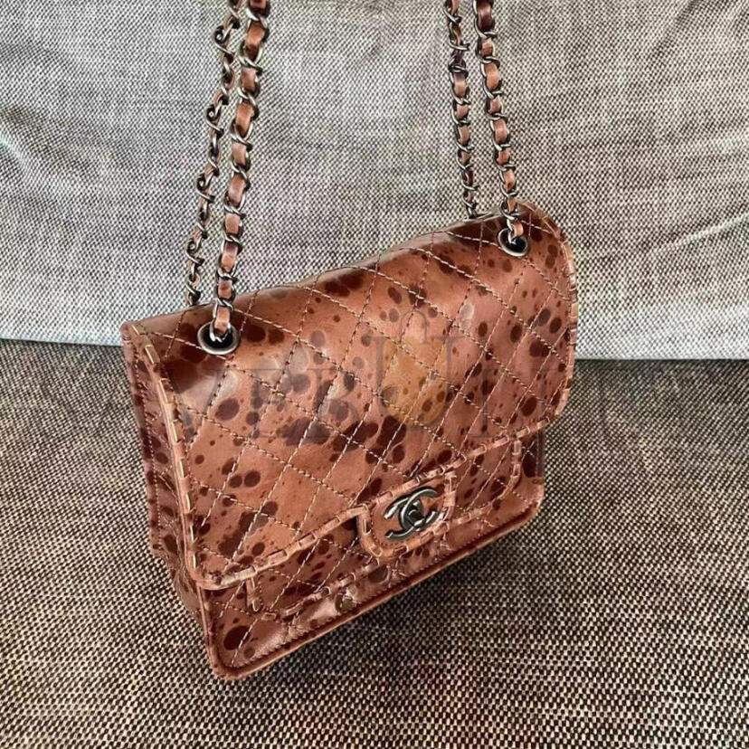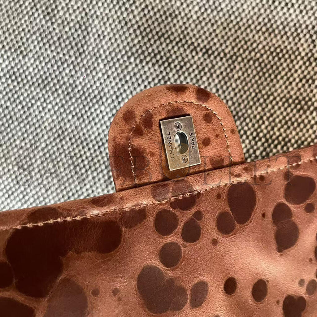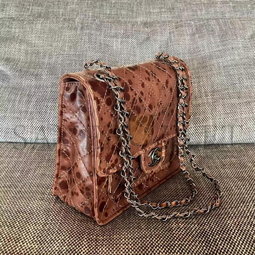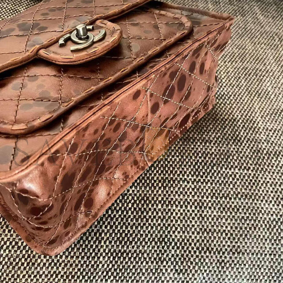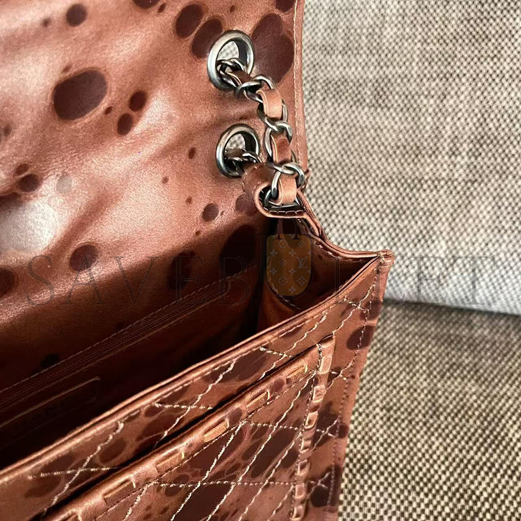 CHANEL OIL WAX LEATHER CHAINS SHOULDER FLAP BAG BROWN 163542 (26*23*11cm)