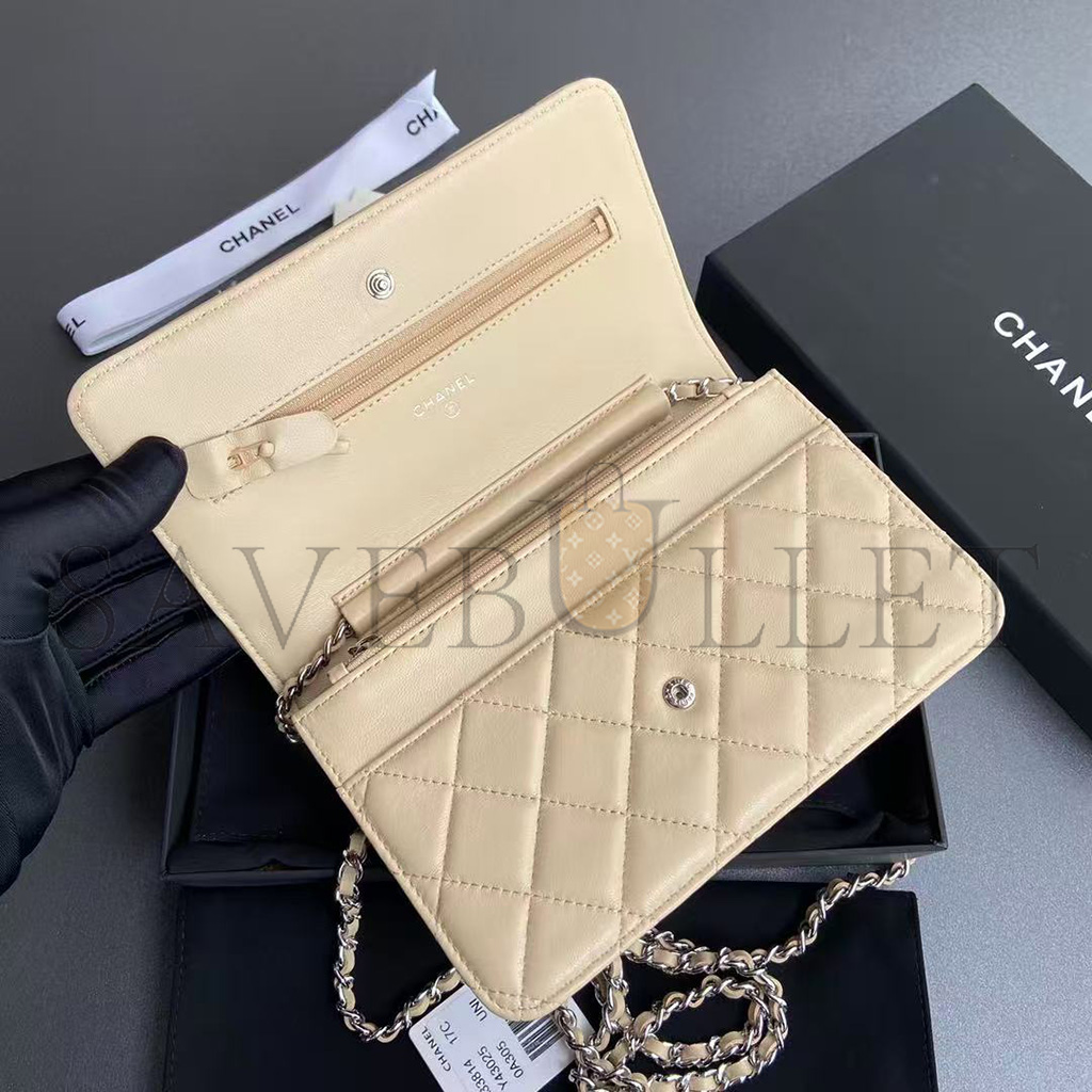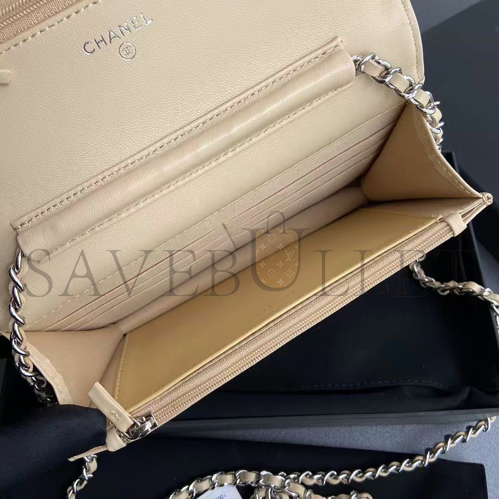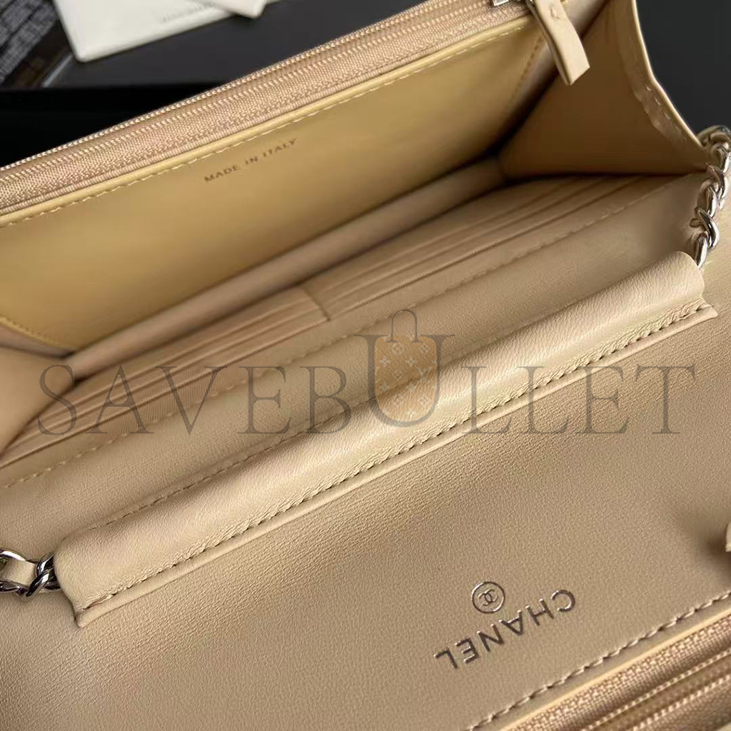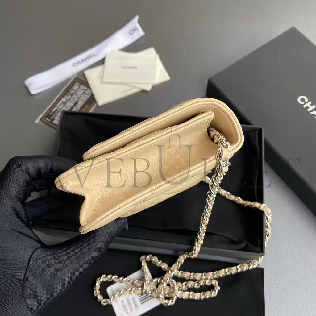 CHANEL QUILTED LEATHER WALLET ON CHAIN WOC BEIGE AP0250 (19*13*3cm)