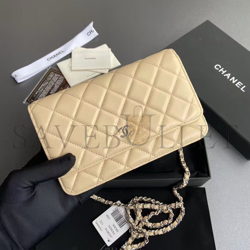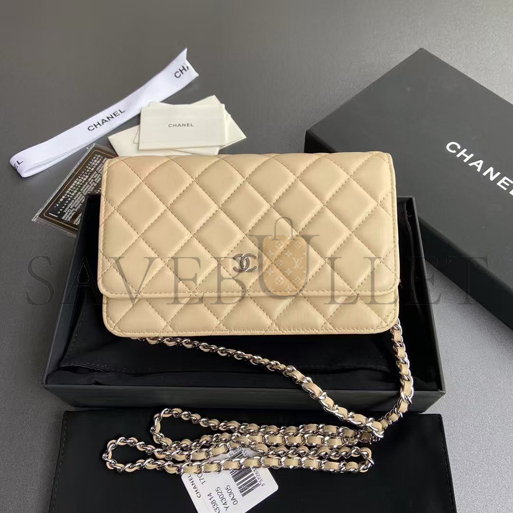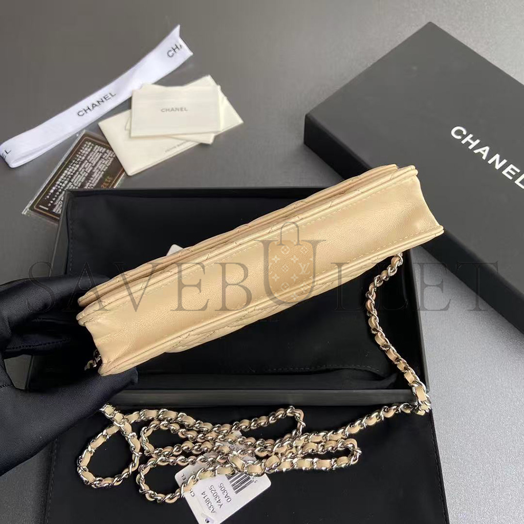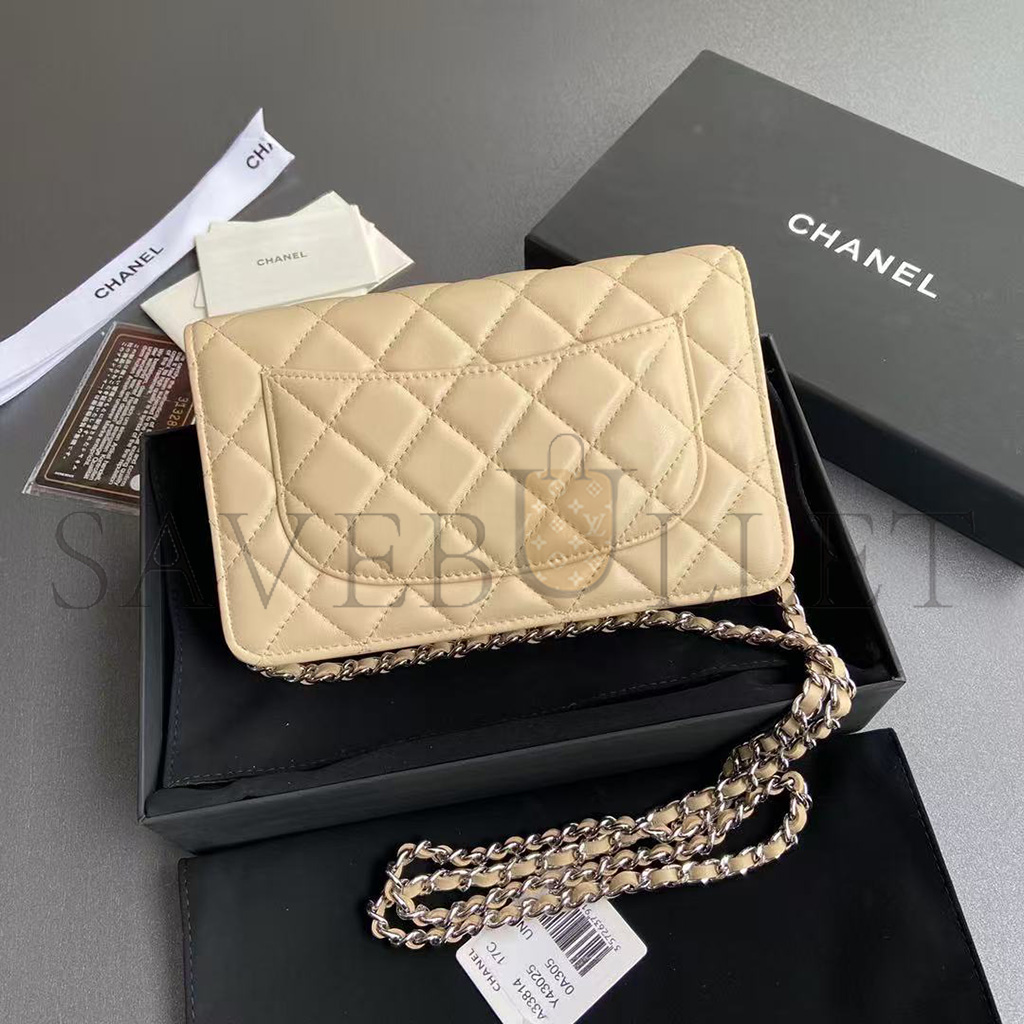 CHANEL QUILTED LEATHER WALLET ON CHAIN WOC BEIGE AP0250 (19*13*3cm)
