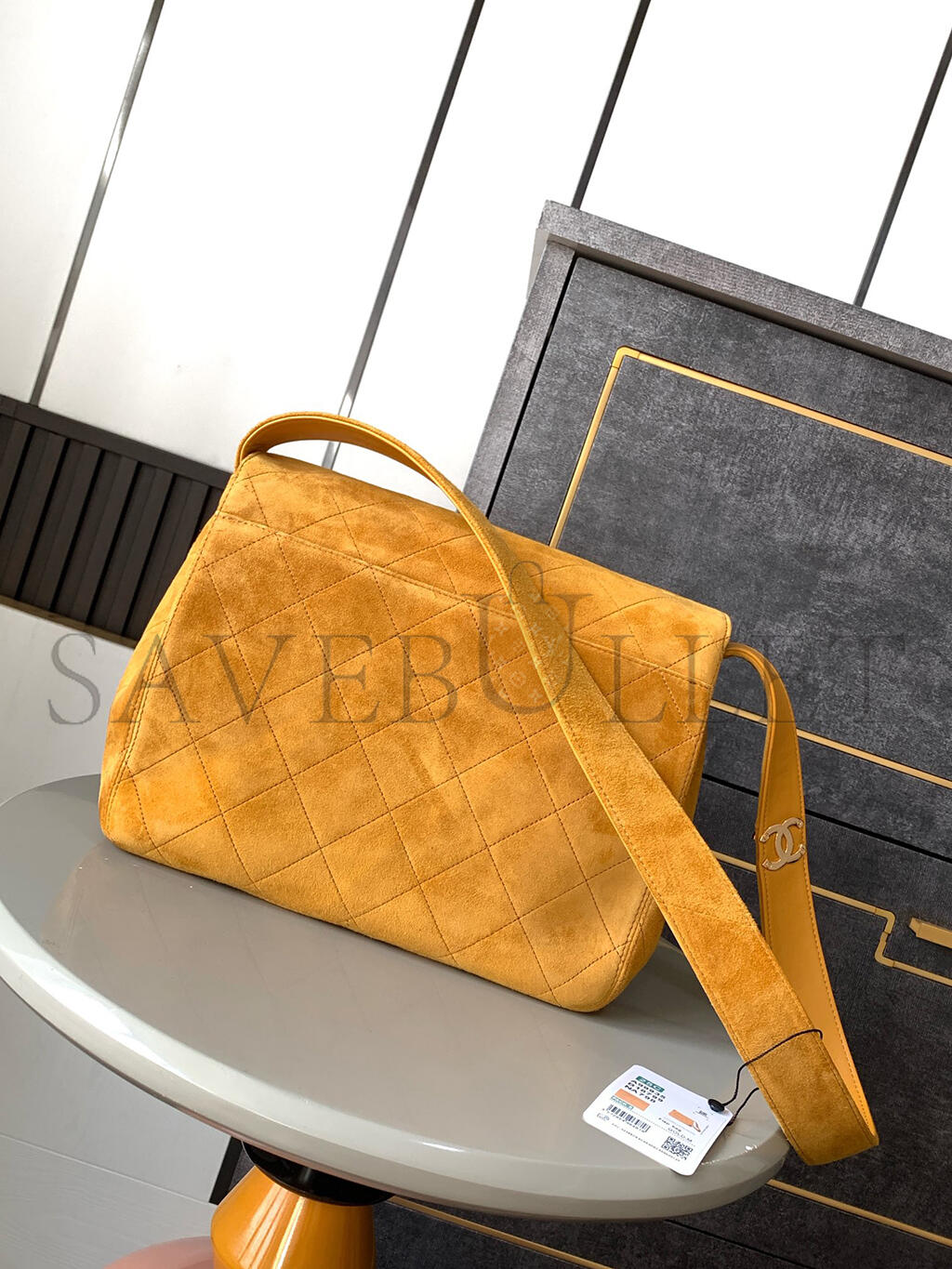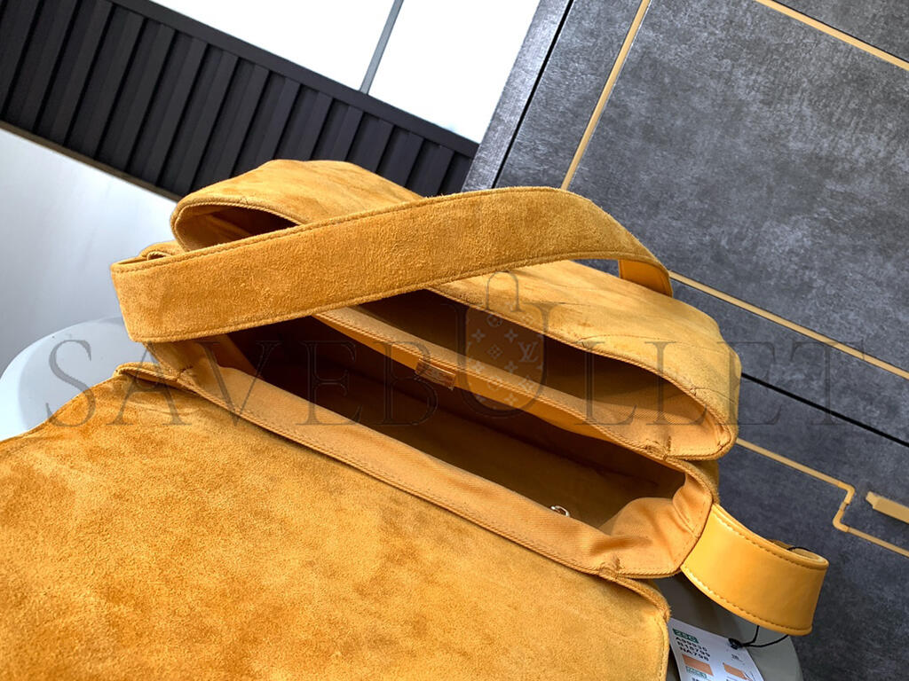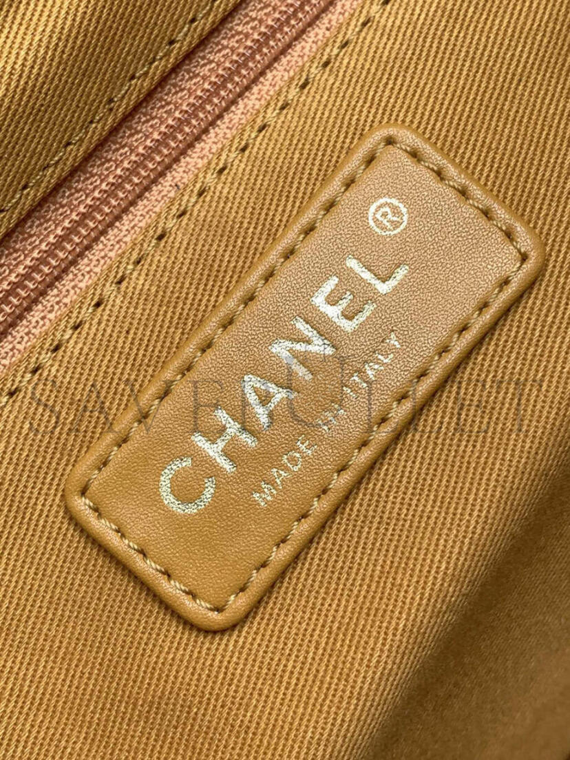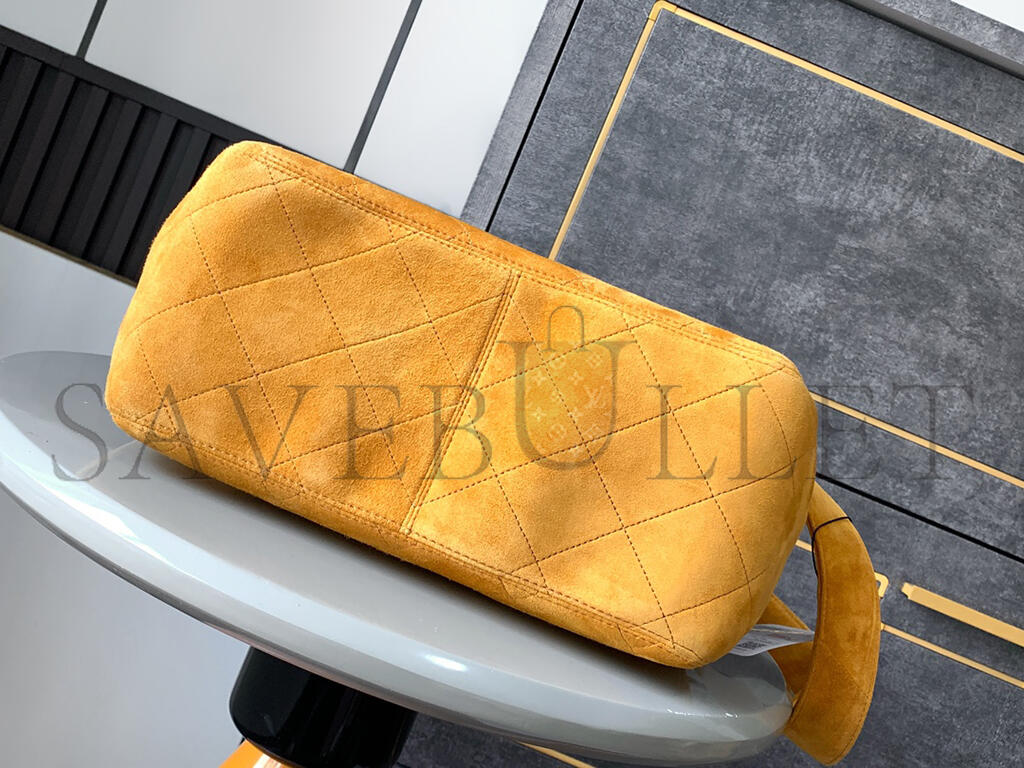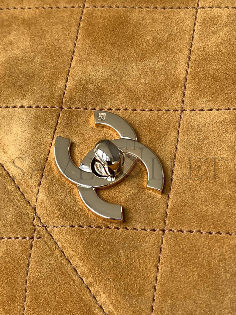 CHANEL VINTAGE SUEDE QUILTED FLAP SHOULDER BAG KHAKI A99935 (28*24*12.5cm)