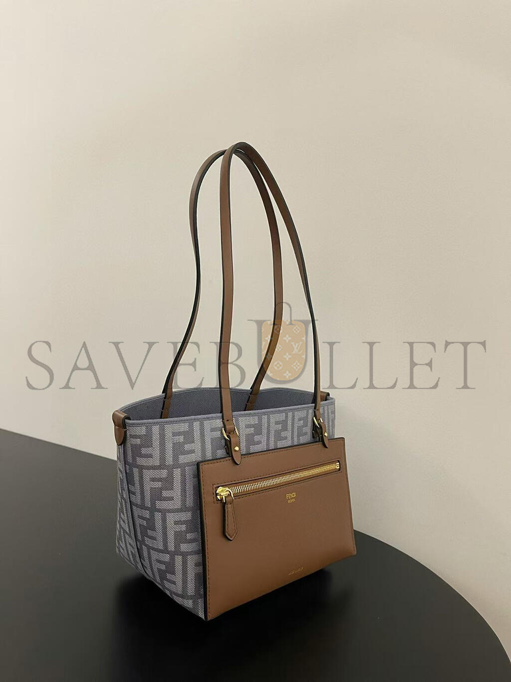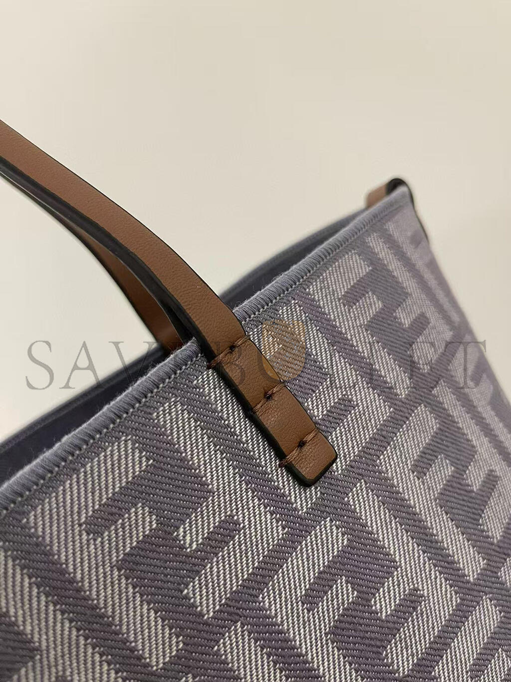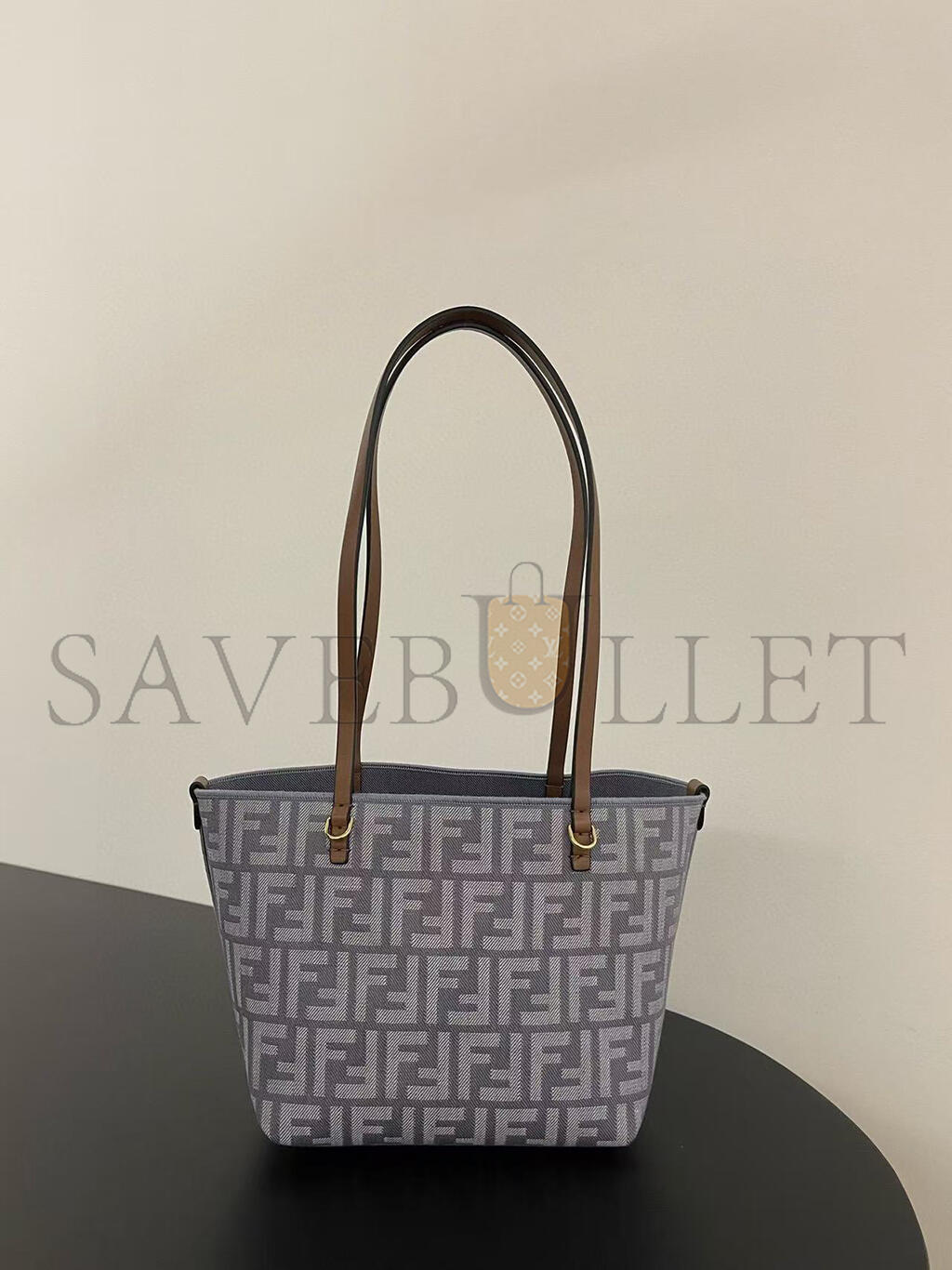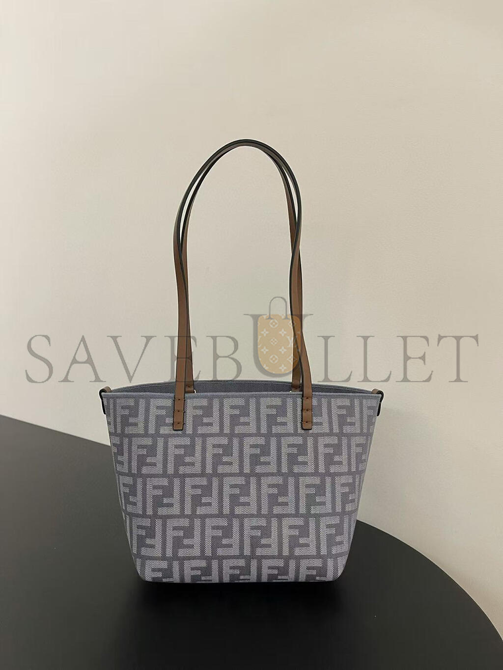 FENDI SMALL ROLL BLUE DENIM-EFFECT FF JACQUARD REVERSIBLE SHOPPER 8BH424AUT4F1SXQ (23*19.5*15cm)