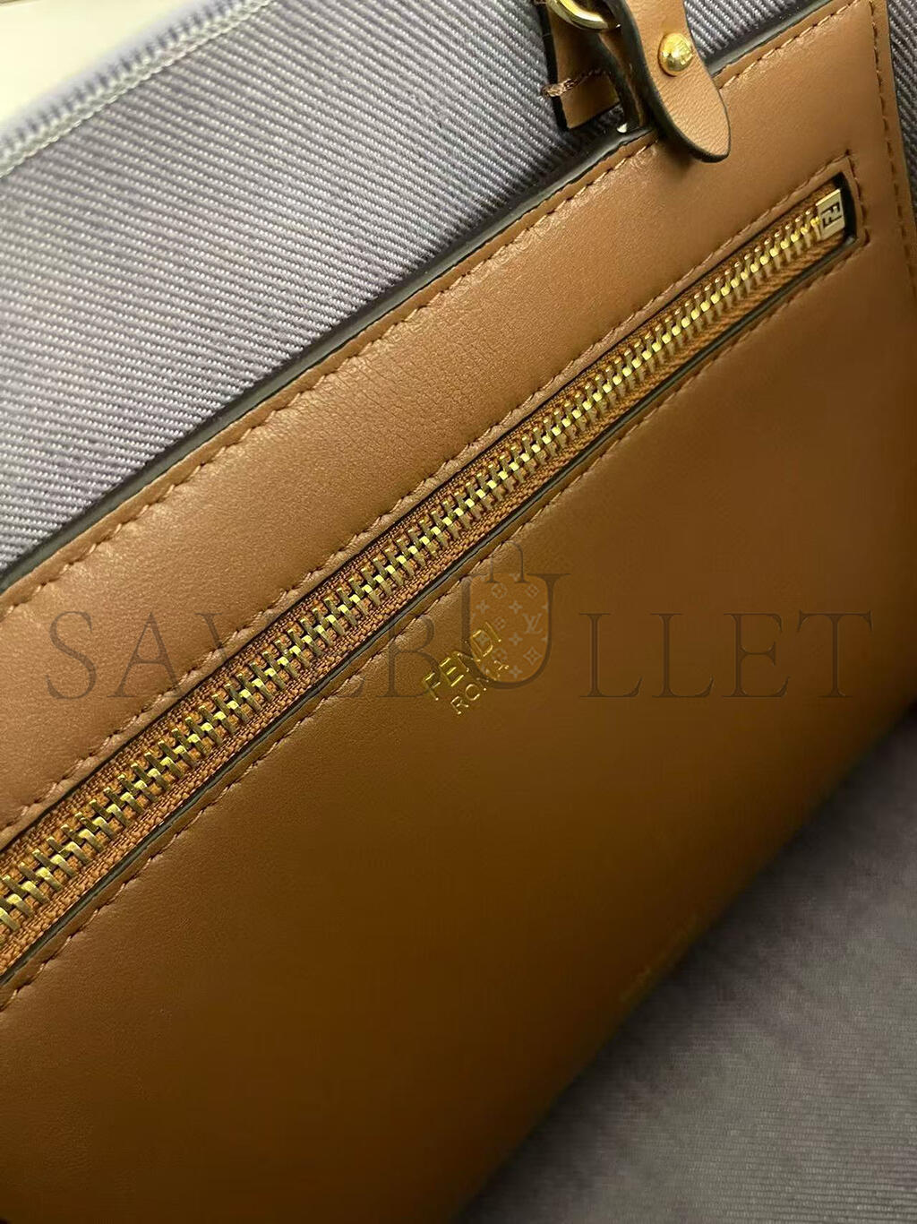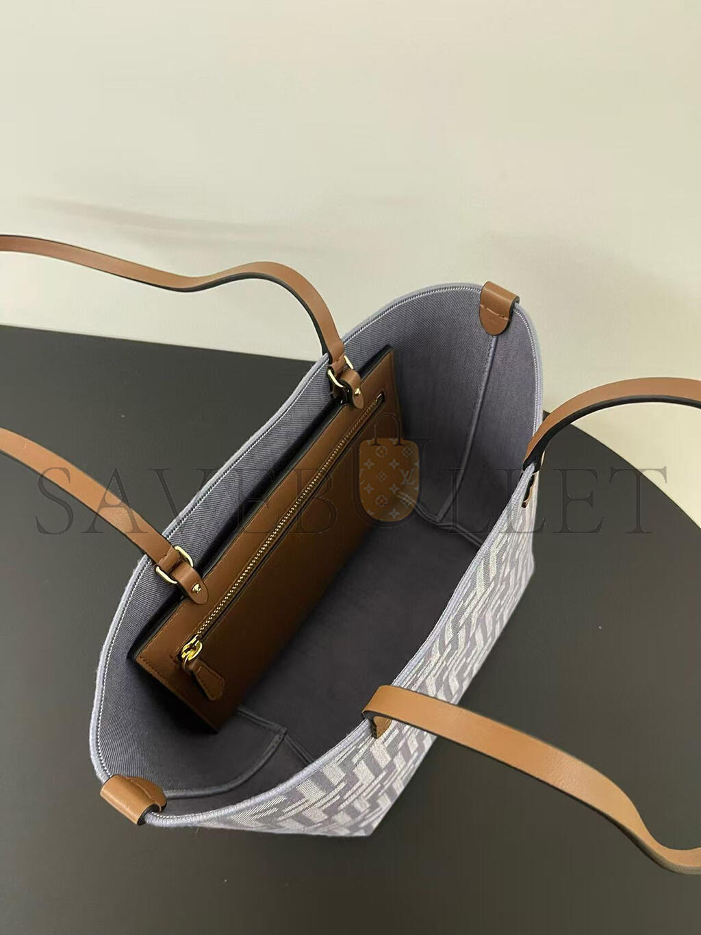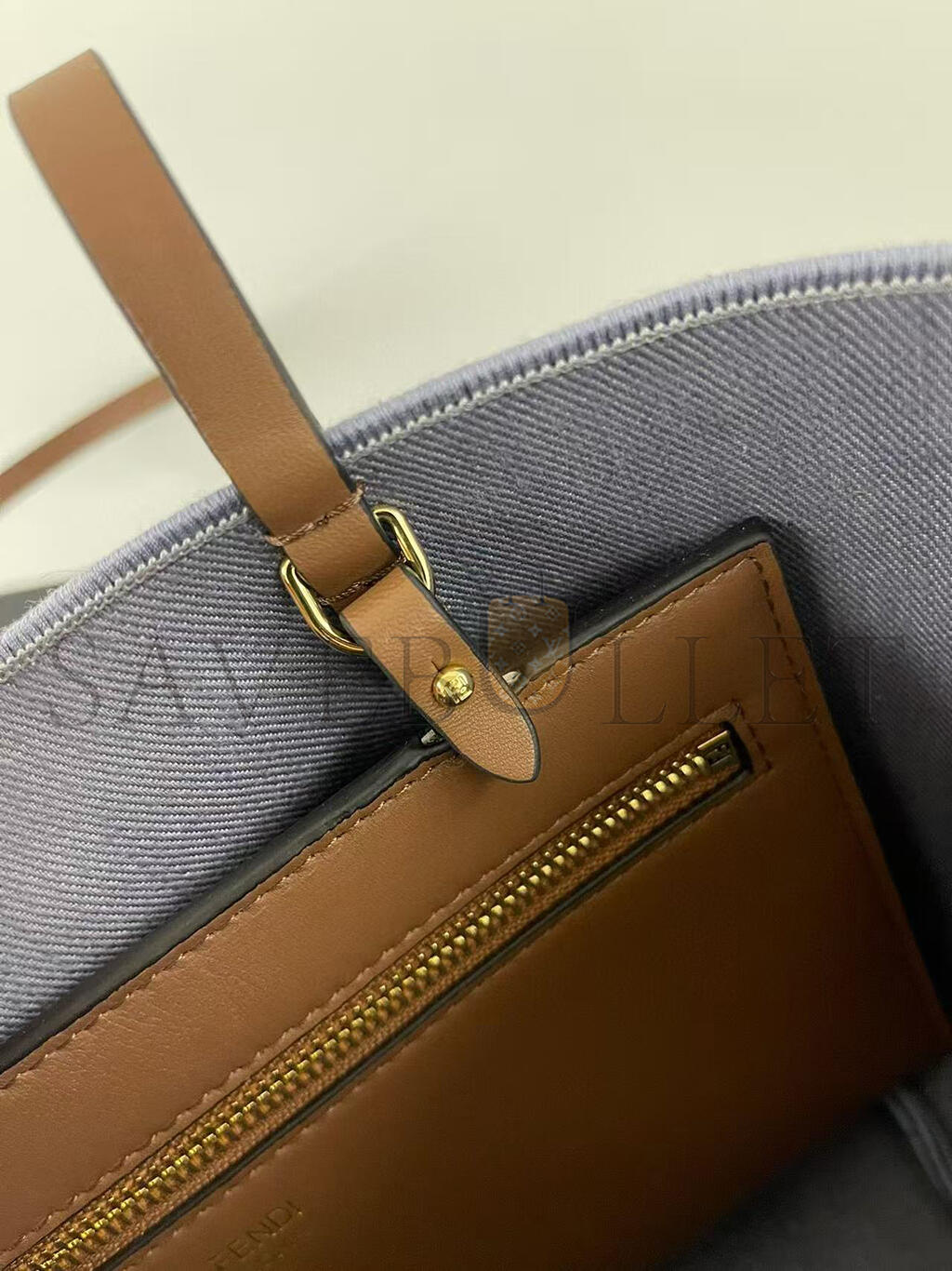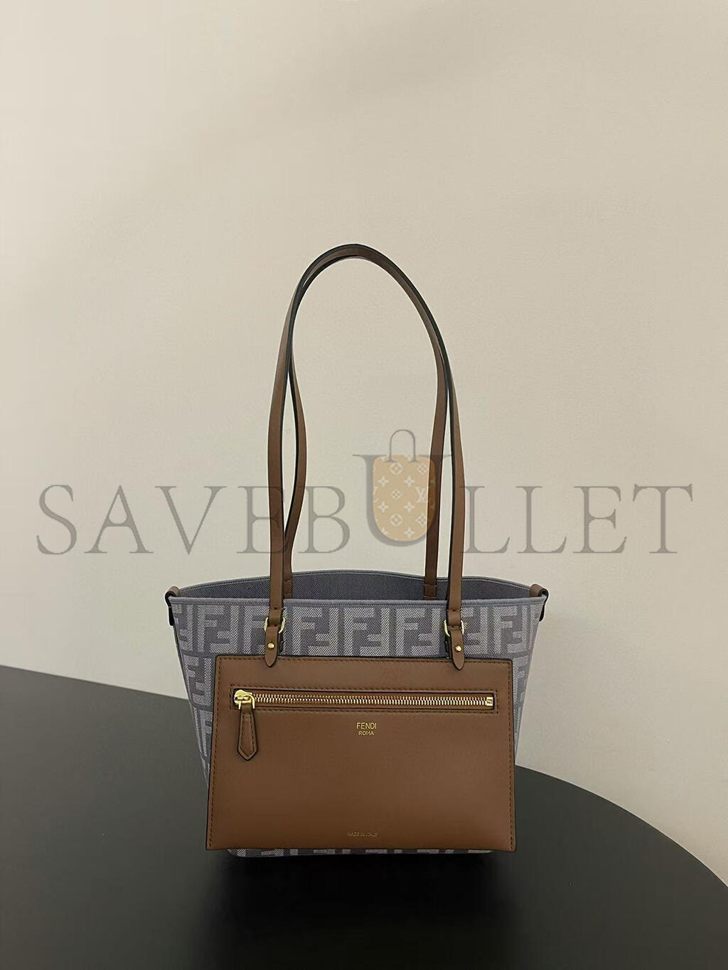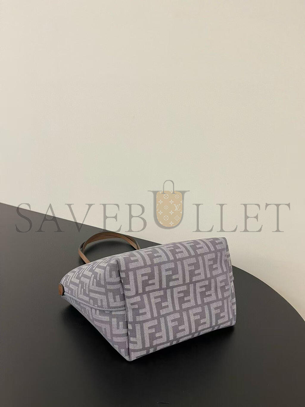 FENDI SMALL ROLL BLUE DENIM-EFFECT FF JACQUARD REVERSIBLE SHOPPER 8BH424AUT4F1SXQ (23*19.5*15cm)