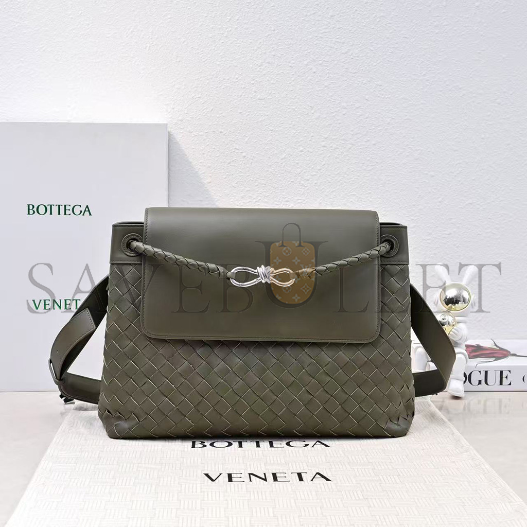 INTRECCIATO GRAINED LEATHER MESSENGER WITH CONTRASTED STITCHING