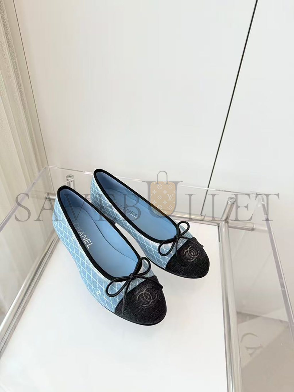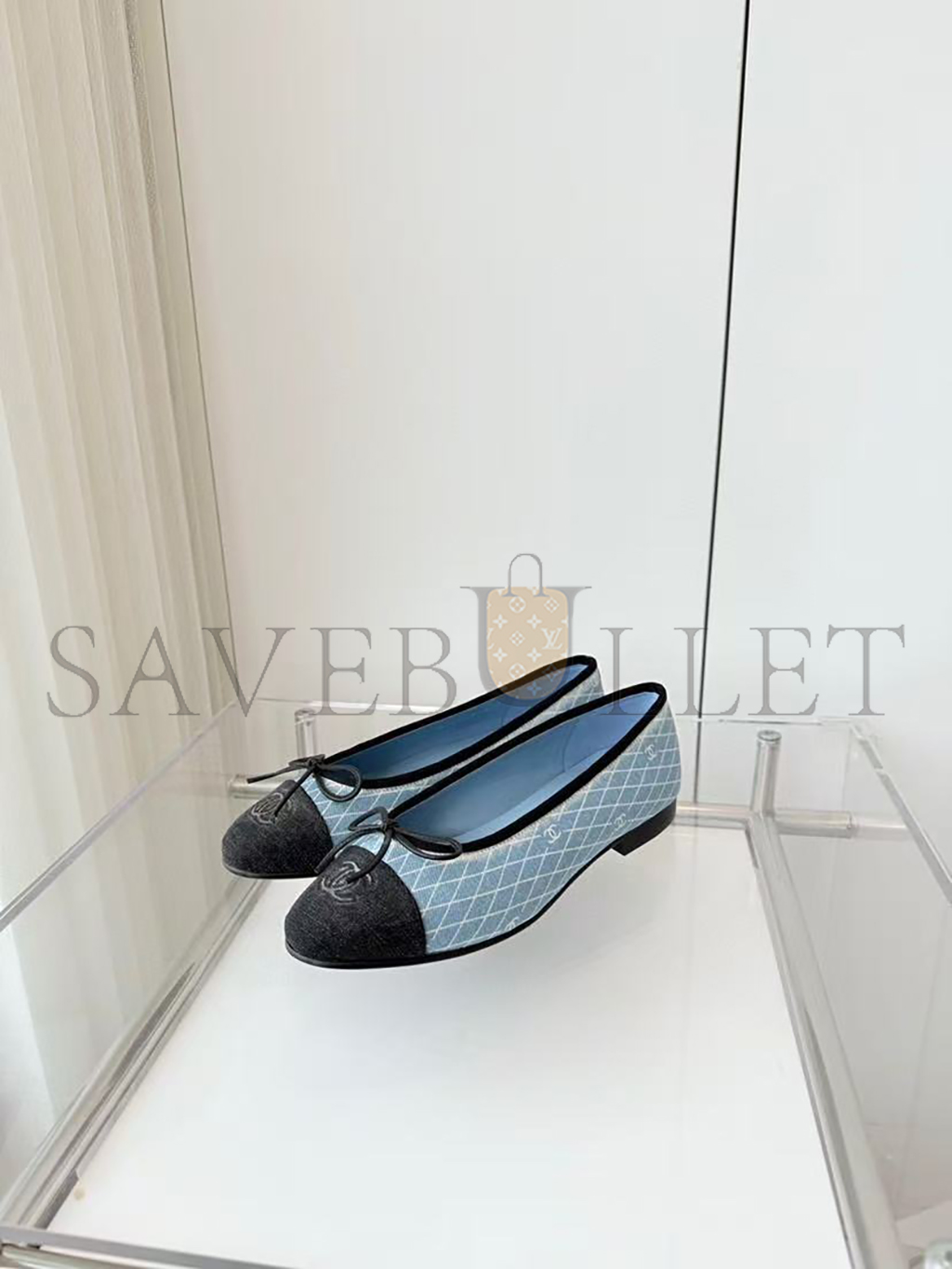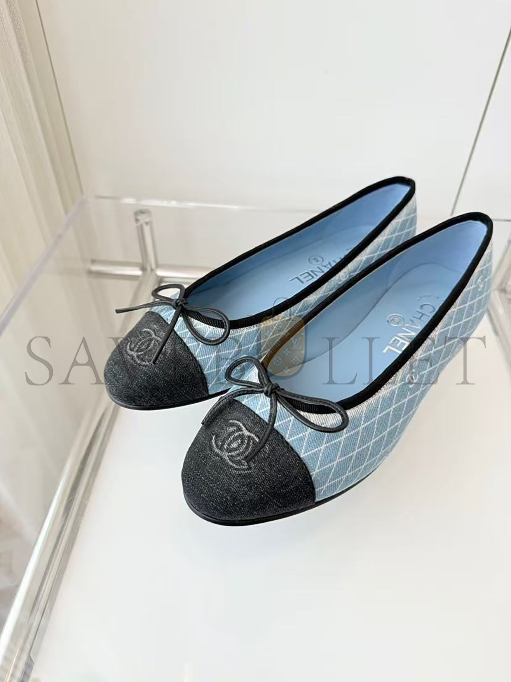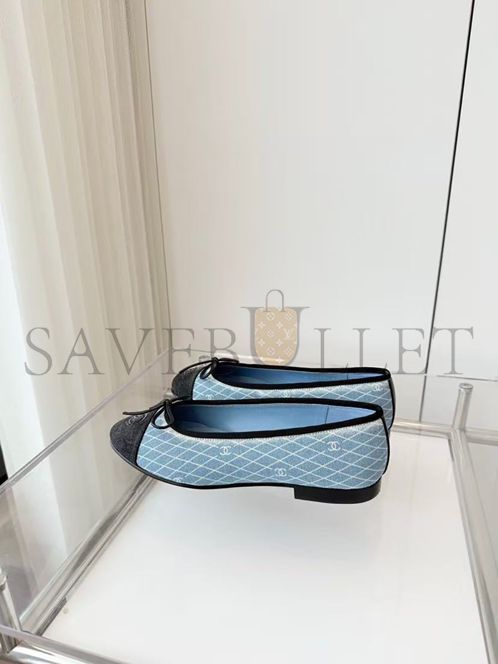 CHANEL DENIM PRINTED QUILT CC CAP TOE BALLERINA FLATS 157513