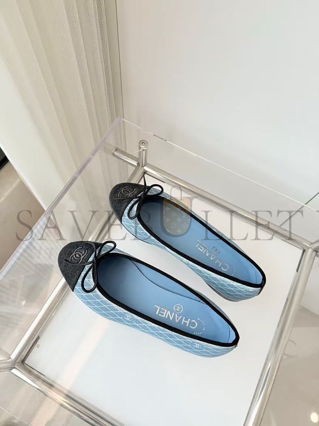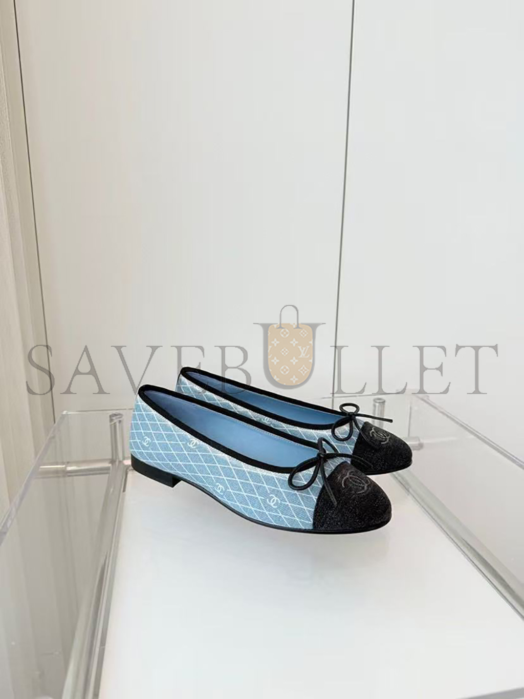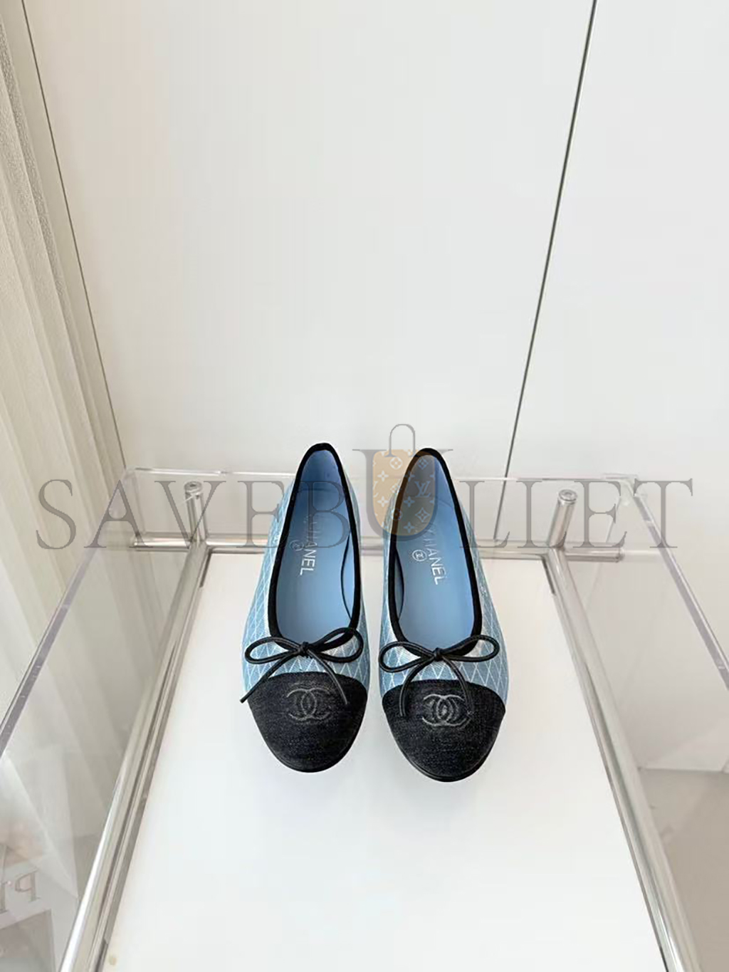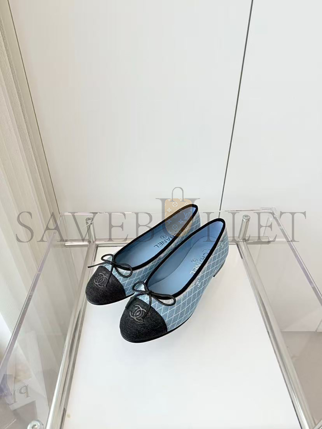 CHANEL DENIM PRINTED QUILT CC CAP TOE BALLERINA FLATS 157513
