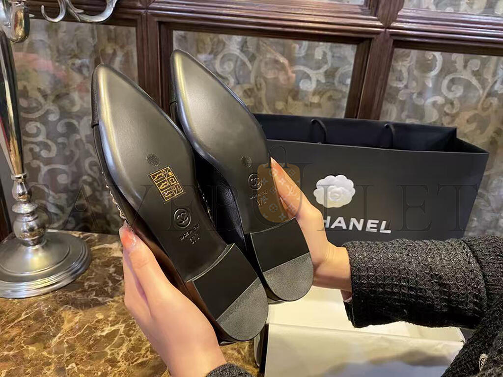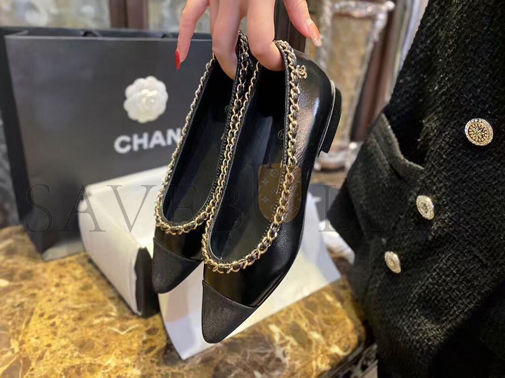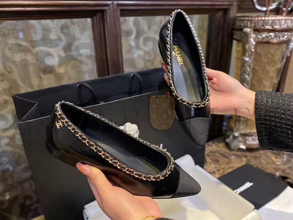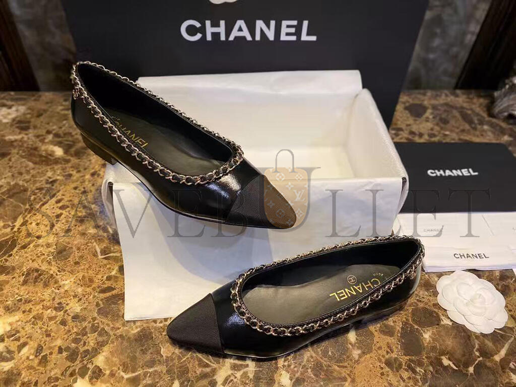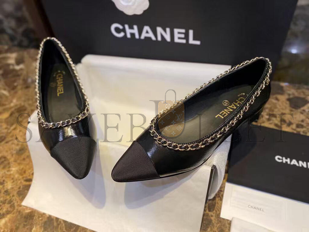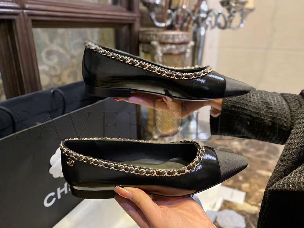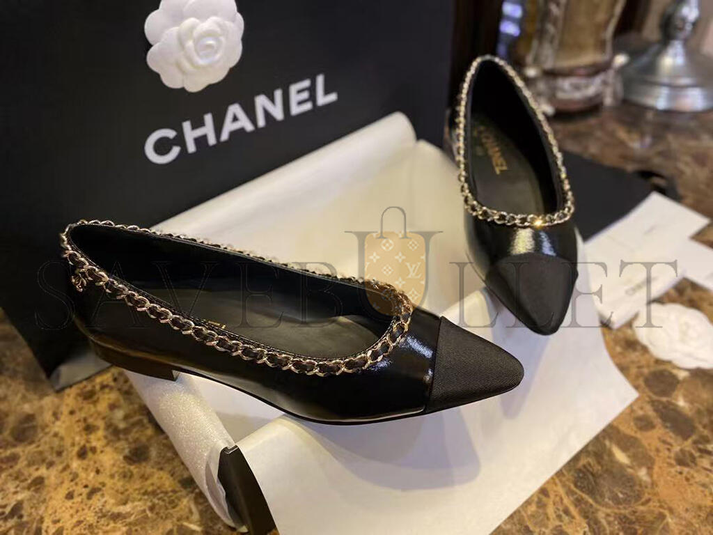 CHANEL FABRIC GROSGRAIN CHAIN CAP TOE FLATS 272269