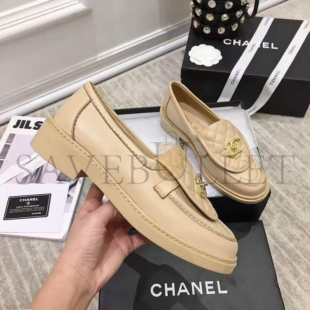 CHANEL QUILTED LEATHER CC TURNLOCK LOAFERS